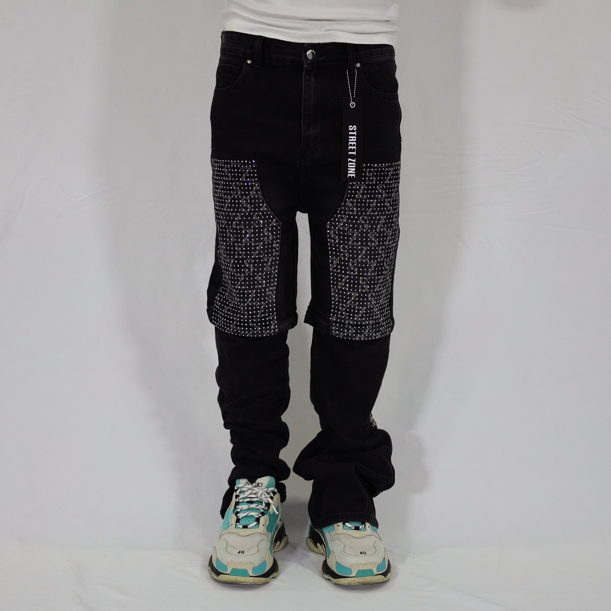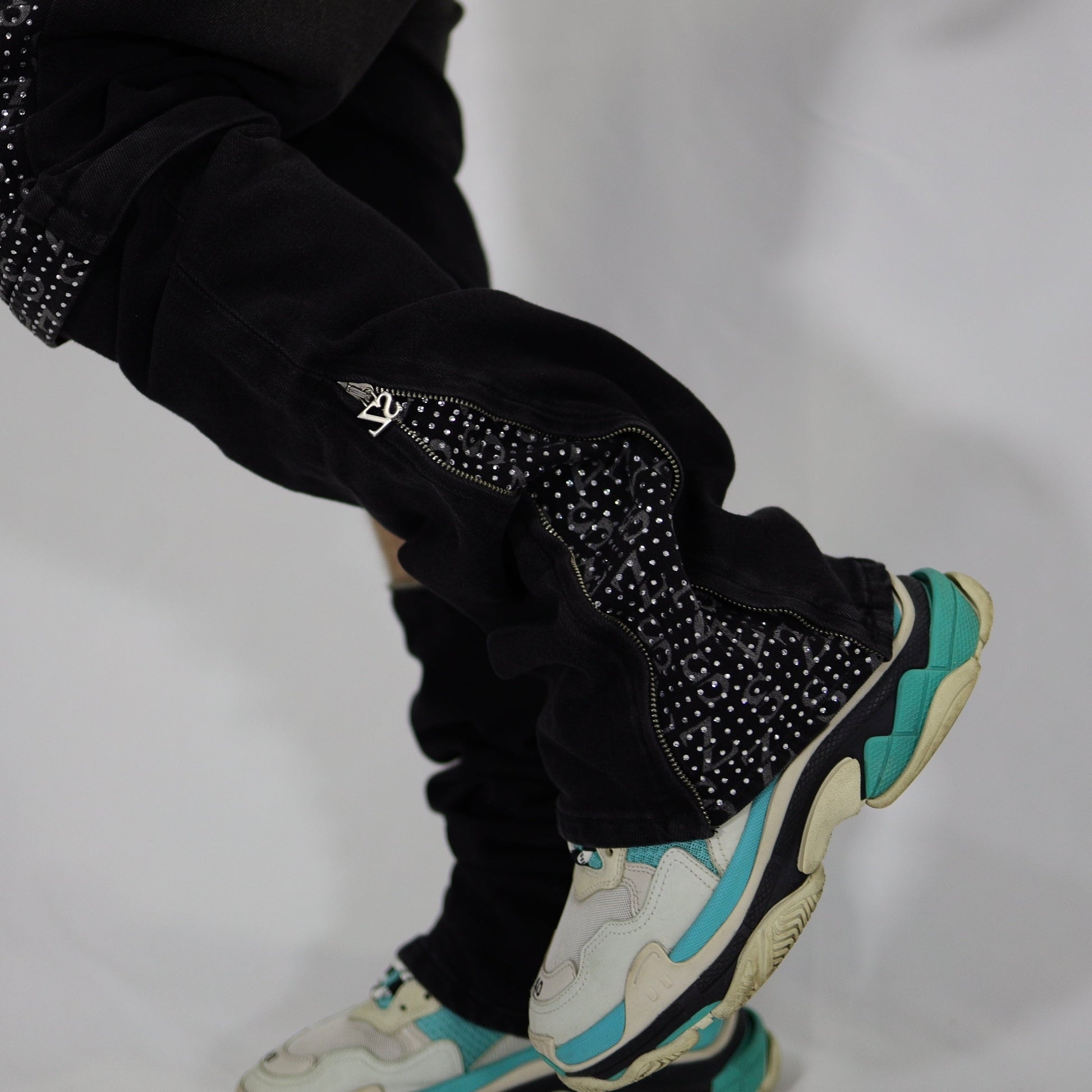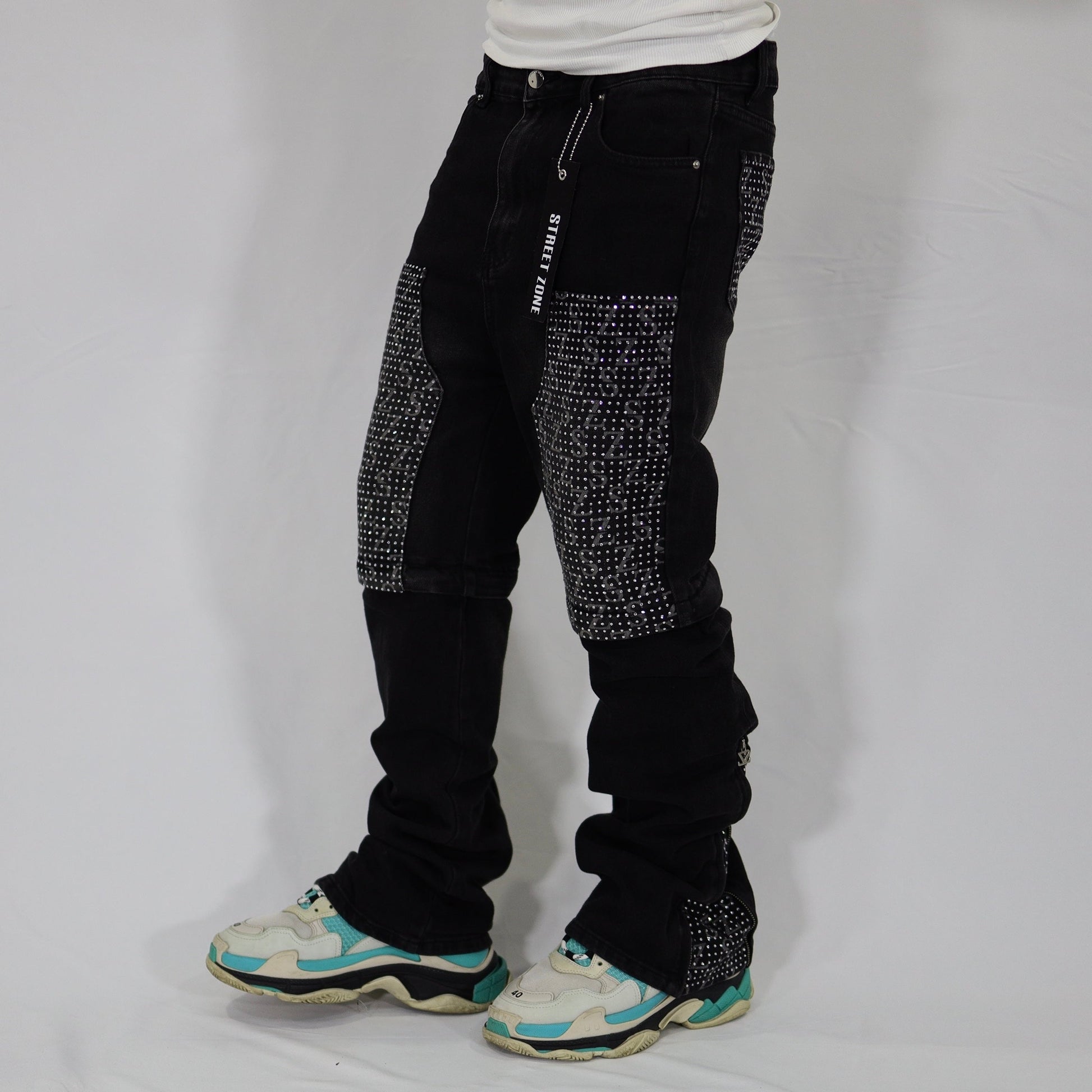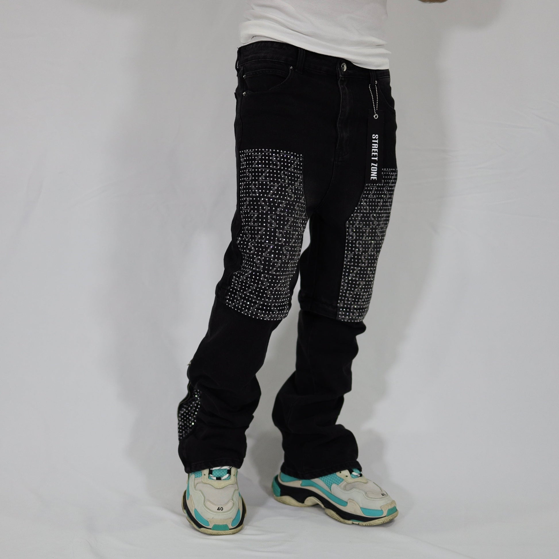 Black swarovski flare jeans
